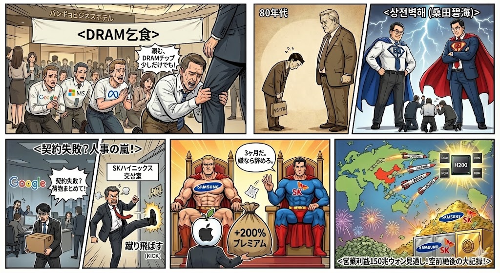 판교와 평택 일대 비즈니스 호텔들이 반도체 특수로 북새통이다. 구글, 마이크로소프트(MS), 메타 등 실리콘밸리를 호령하는 빅테크 구매 담당자들이 호텔에 진을 치고 삼성전자와 SK하이닉스를 찾아가 “D램 좀 달라”고 통사정한다. 업계에선 ‘D램 거지(DRAM Beggar)’라는 웃지 못할 별명까지 붙였다. 40여 년 전 우리 반도체 영업맨들이 샘플을 들고 실리콘밸리를 돌며 “한 번만 써달라”고 읍소하던 풍경과는 완전히 상전벽해다.