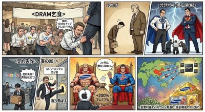 ▶ 요즘 글로벌 빅테크 기업에선 D램 확보 실패는 곧 ‘인사 태풍’이란 말이 있을 정도다. 구글에선 메모리 장기 공급 계약을 체결하지 못한 구매 임원들이 짐을 싸는가 하면 MS 임원은 SK하이닉스와의 협상장에서 공급이 어렵다는 말을 듣자 격분해 회의실 문을 박차고 나갔다고 한다. 애플조차 200% 이상 비싼 프리미엄을 얹어주며 물량을 확보한다. 공급자가 압도적 우위를 점하다 보니 삼성과 SK는 3개월짜리 단기 계약만 해준다. 지금 반도체 시장의 ‘수퍼 갑(甲)’은 명실상부 한국 기업들이다.