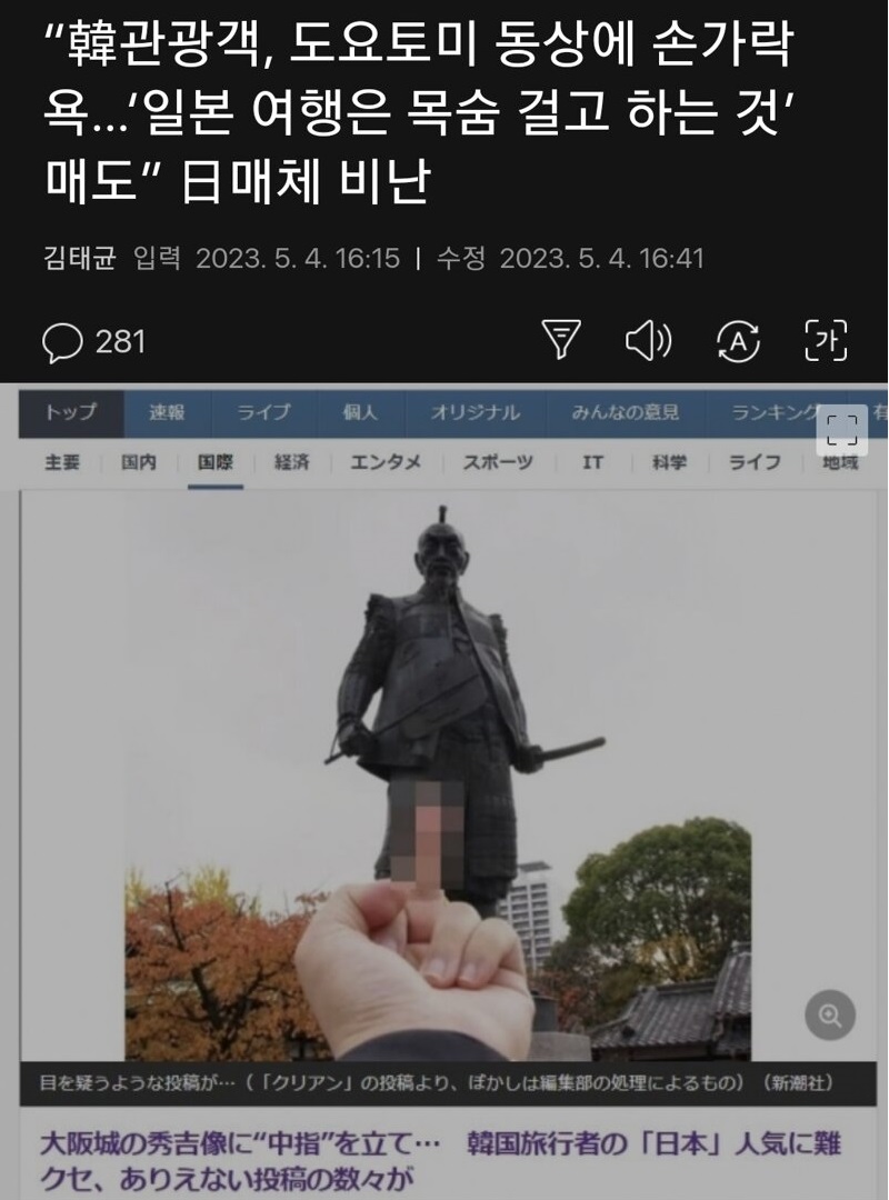 それを朝鮮人はずっと日本にたいしてやってきてるんだよ 朝鮮人って本物のキチガイだろ>>23 일본인들은 이부분에 대해 너무 진지하고 심각하게 받아들이는거 같아요.