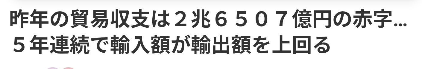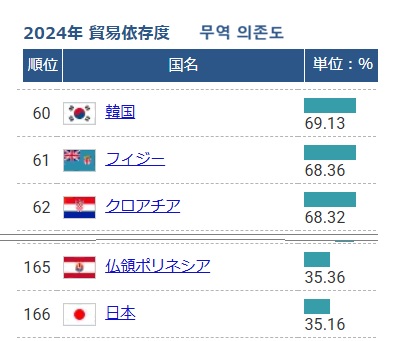 一方、日本の主な収入は第一次所得収支は2673億ドルで世界トップクラス(韓国の第一次所得収支は日本の約1/14程度)