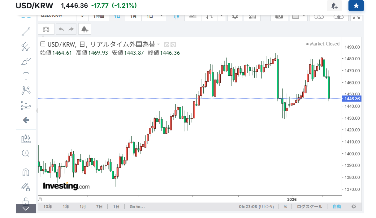 いままさにウォン下落中