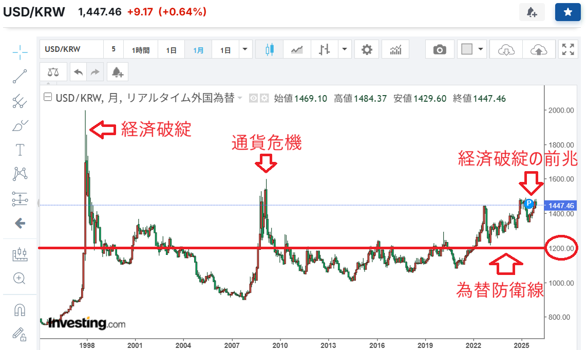 年末の韓国ウォン