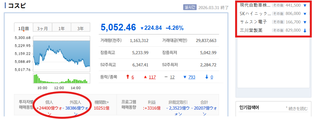 米国・イラン間の戦争長期化に対する懸念からウォン相場が連日急騰を続け、約17年ぶりに1ドル=1530ウォン線を超えた。株式市場は垂直落下し、5000ラインを脅かした。