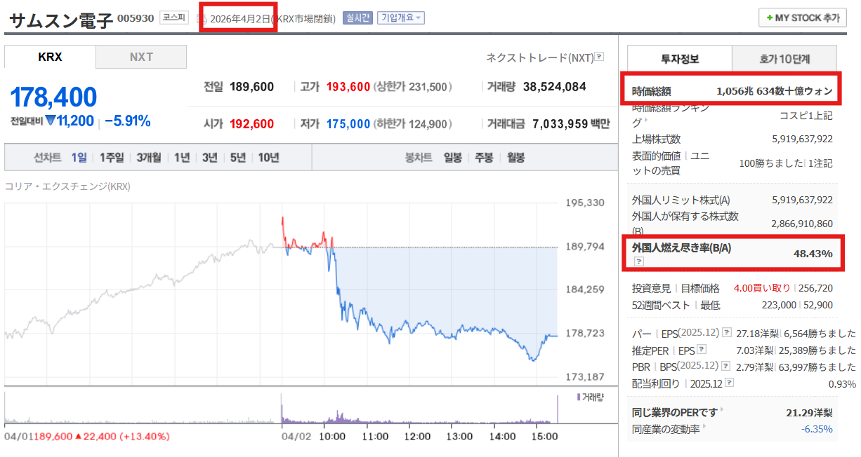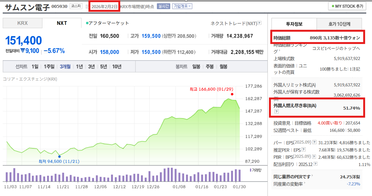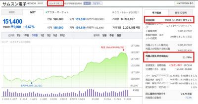 samsung株 -5.16%