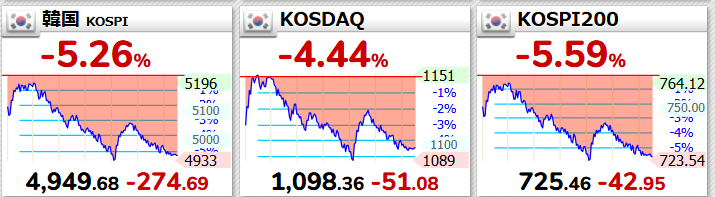 kospi4500割れぐらいは全然普通の下げだから、まだ下がる余地は充分有るね。