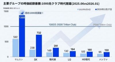 半導体の好調に支えられ、韓国は2025年に1230億ドルを超える史上最大の経常収支黒字を記録した。それにもかかわらず、ドル・ウォン相場は1ドル=1400ウォン台後半が続く。教科書的な「経常黒字=通貨高」という関係が当てはまらない状況だ。