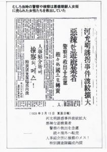 ・東亜日報(1939.03.28) 50人余りの娘が朝鮮人人身売買団に引っかかり、北支や満州に娼妓として売られるも、日本の警察が救出する