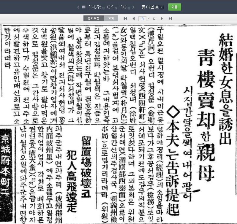 ・東亜日報(1933.07.01) 少女誘拐団のトップを逮捕 主に幼い少女たちを誘い出し、売春宿に売り飛ばしていた