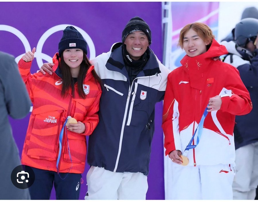 金メダリストである日本の深田茉莉、中国の蘇翊鳴の指導者