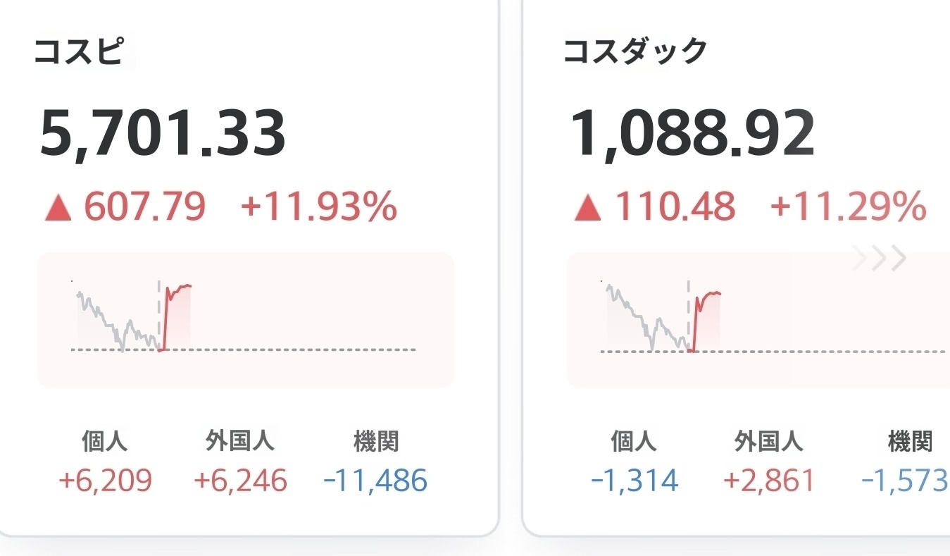 戦争終結とか、李在明がなんか言うとか、何か材料が欲しいですね。