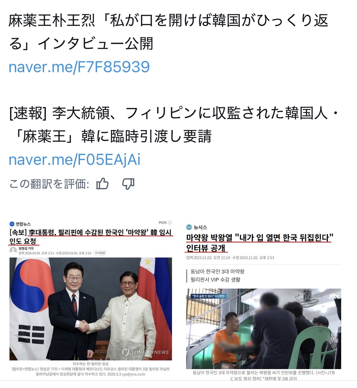 フィリピンに麻薬犯罪者を引き渡し要求