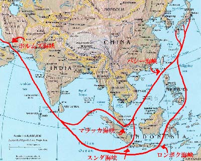 対して台湾はバシー海峡の片側でもあり、バシー海峡~マラッカ海峡は