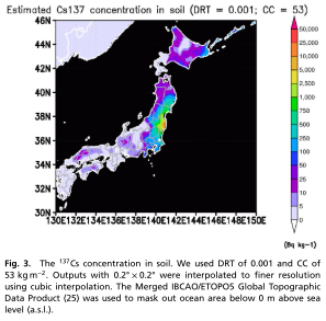 미국 고다드 지구과학기술연구소, 일본 도쿄대, 노르웨이 대기연구소 공동 연구진은 일본 각 지방의 토양에서 검출한 세슘137 값과 시뮬레이션을 바탕으로 만든 ‘일본 세슘 토양 오염지도’를 만들었다고 14일 밝혔다. 연구진이 수집한 세슘137 값은 올해 3월 12일 일본 후쿠시마 원전사고가 발생한 지 8일 뒤인 3월 20일부터 4월 19일까지 한 달간의 측정치다. 연구진은 지도에서 토양에 축적된 세슘137 양이 많을수록 주황색과 노란색 등 붉은색 계열로 표시했다. 원전 사고가 일어난 후쿠시마 현은 세슘137의 양이 일본 식품위생법의 기준치인 5000Bq(베크렐·방사성 물질의 세기를 나타내는 단위)을 넘었다. 후쿠시마 현의 전체 평균치는 5969Bq이었지만 일부 지역은 2만1000Bq까지 올라간 것으로 파악됐다.もうやだ ><