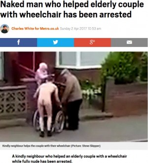 全裸で車椅子の老人を助けた男性、逮捕される(英)