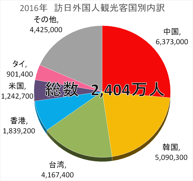 2016年訪日外国人観光客国別内訳