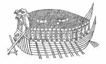 想像図だろうけど、これでどうやって海戦に挑んだんだ?
