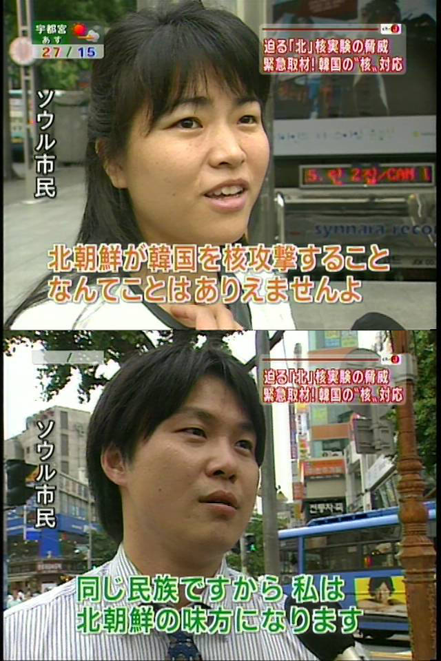 同じ半島って…韓国人は甘いなぁ。自国民が餓死してるのを知っててわずかな金をミサイルに使い、血を分けた兄弟すら自分の手も汚さずに暗殺しちゃうような独裁者が、日本の金にたかって金持ちになったような気になってる甘ちゃんにこの世界の厳しさを思い知らせるチャンスを逃すもんなのかね? とも思います。