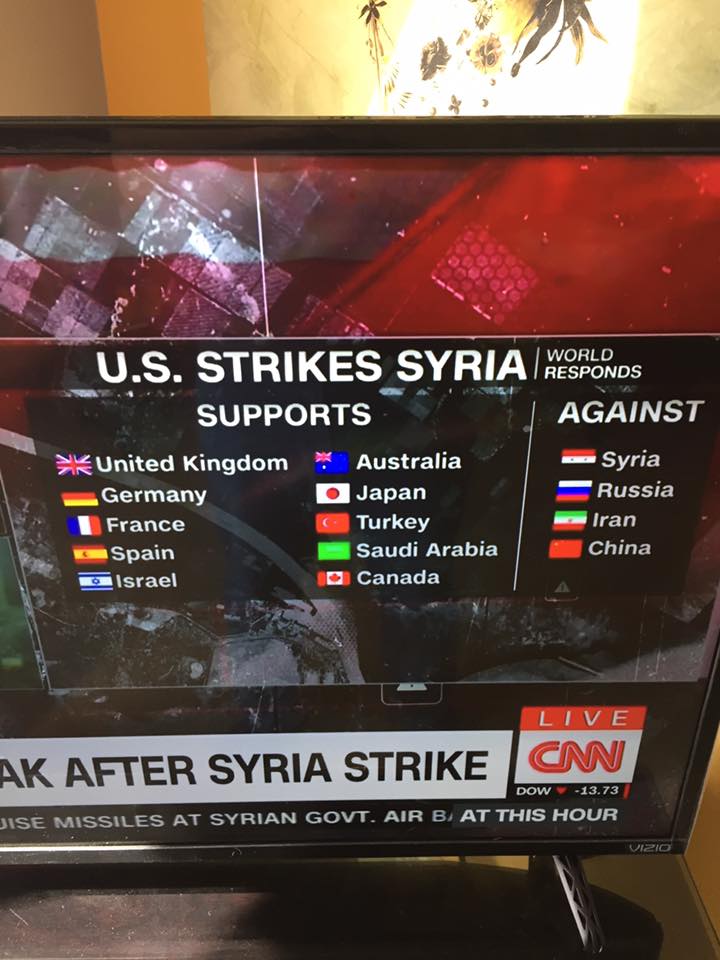 韓国と国交がなく、北朝鮮の最大の友好国のシリアにおける、アサド政権による人道に対する暴挙にへの、アメリカの攻撃に対して、素早く反応する必要があった>>1
