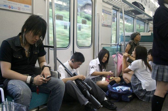 混んでる車内で、平気で隣の席にカバン置くし、写真のような態度取っている奴らもいた。