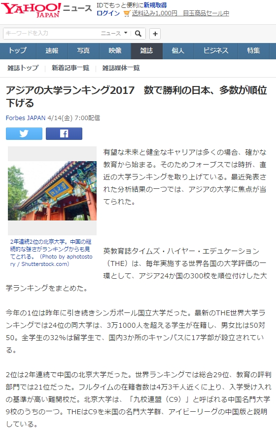 日本は日本人の為の大学だから、どうしても低く出る。>>16 成果を出してるなら素晴らしいですね。自分も文系だから、理系には無関係だが、理系の人には世の中をよくするために、頑張ってもらいたいです。