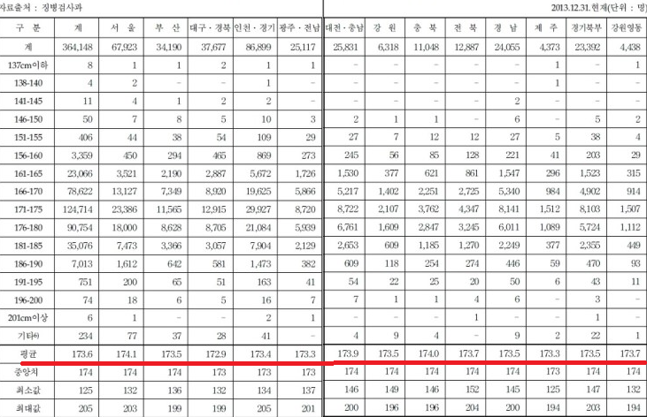 韓国は平均173cmで日本は171cm