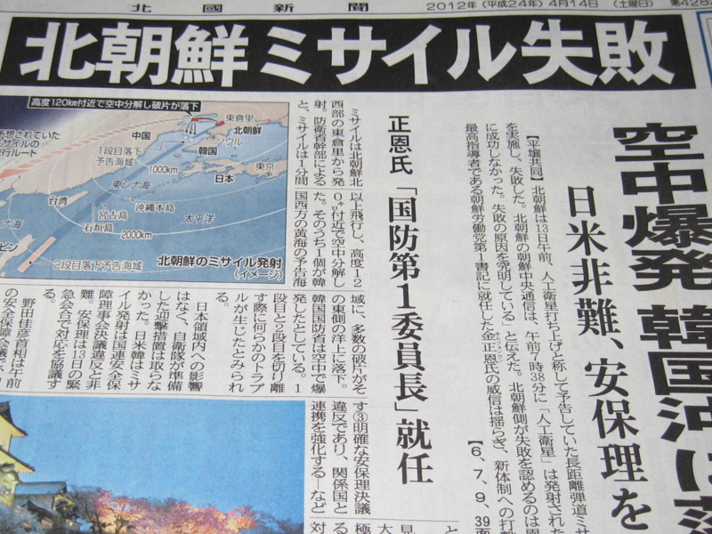 北朝鮮ミサイル失敗