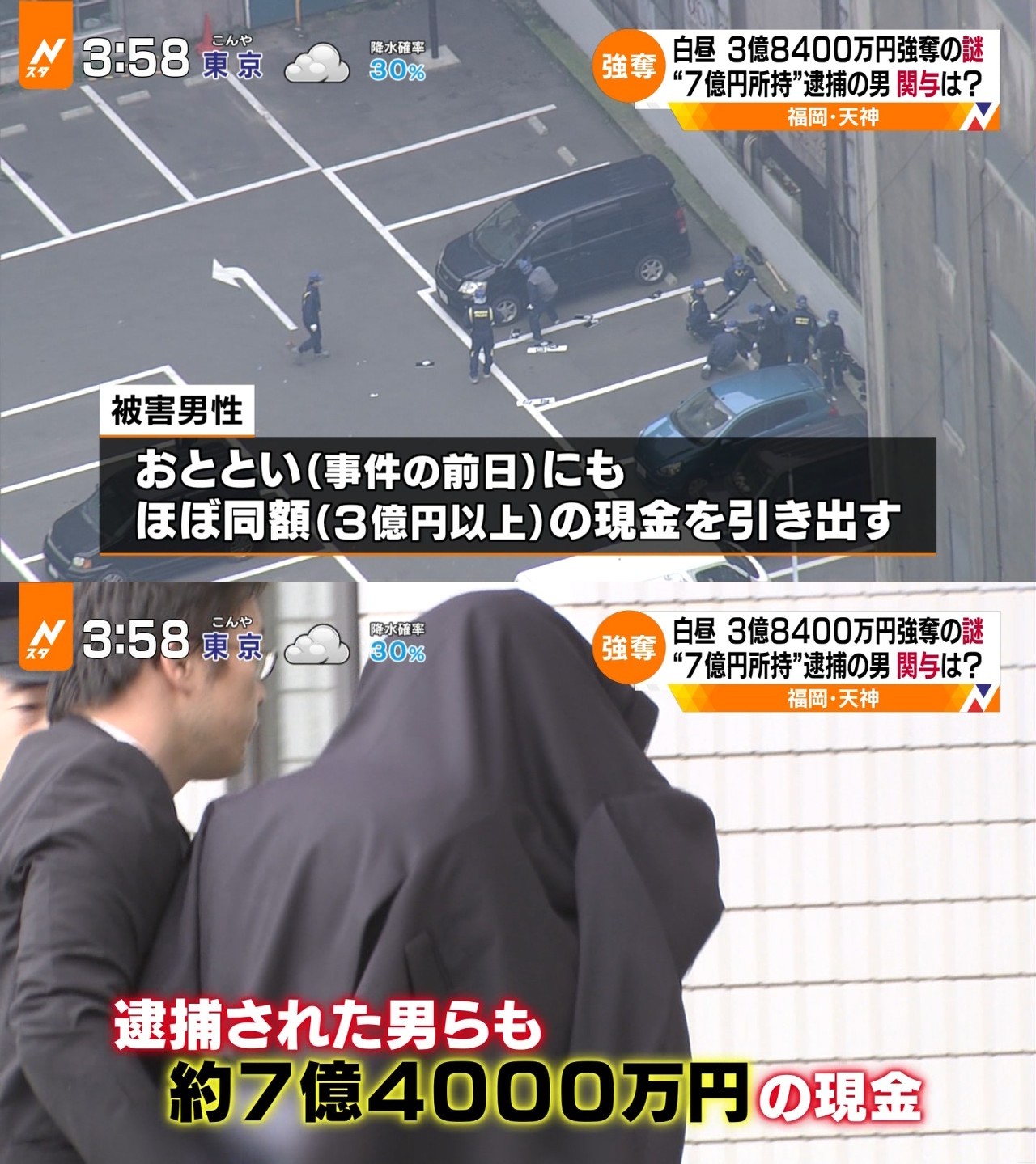 これから3億8400万円の強奪事件に関与しているかどうか慎重に取り調べをする。