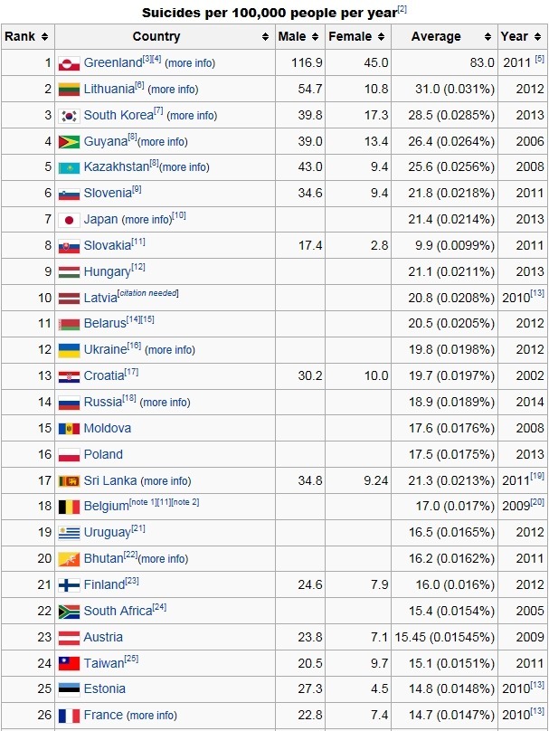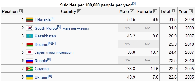 https://en.wikipedia.org/wiki/List_of_countries_by_suicide_rate