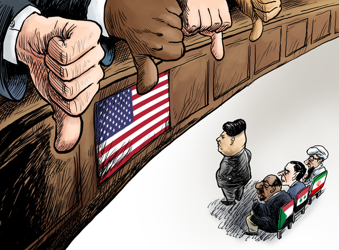 一方、北朝鮮は反発を強めている。23日付の朝鮮労働党の機関紙・労働新聞は、北朝鮮に圧力を加えるため西太平洋で海上自衛隊と共同訓練を始めたアメリカの空母カール・ビンソンについて、「太って肥大したただの変態動物」とこきおろし、「一撃で水葬してしまう戦闘準備を整えた」と威嚇した。