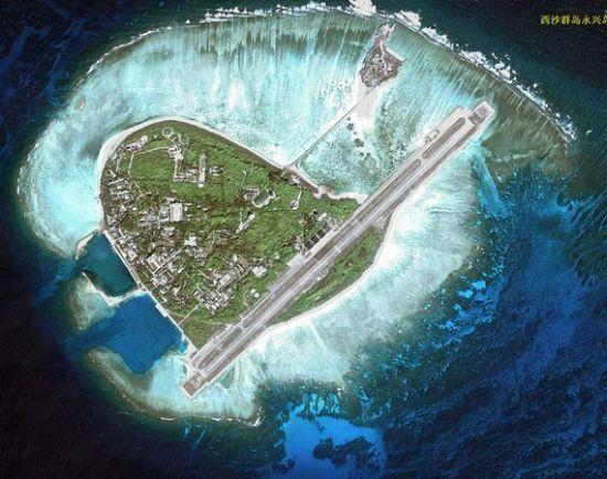 画像は、中国が作った人工島、これによって海域を中国の物と主張、占拠している。