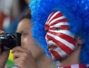 日本が日本旗を振って日本人を応援する。