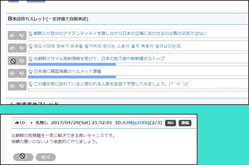 私もキャッシュ掃除をすると数時間その状態になるから仕様でしょ。일본인 측에서 마음에 들지 않는 스레에는 집단으로 BAD를 눌러 스레를 죽이려고 하기 때문에,