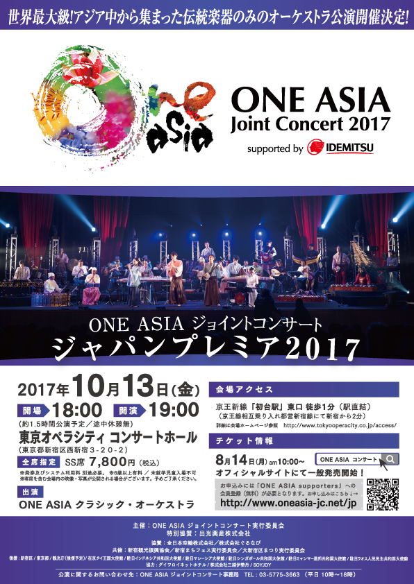 http://www.koreanculture.jp/info_event_view.php?number=5248『ONE ASIA Joint Concert 2017』