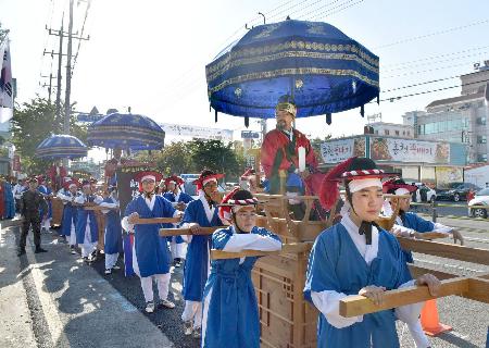 同市は現在の知事に当たる「監司」が通信使の盛大な送別のうたげを主催したことでも知られ、今回はうたげも初めて再現した。
