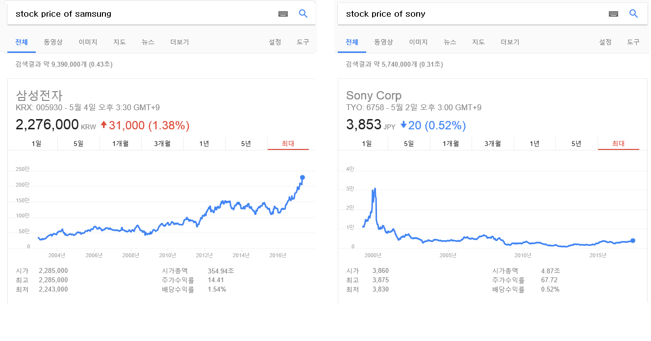 소니 따위는, 삼성에서 운영하는 호텔인 "신라 호텔" 의 주가보다 낮잖아?