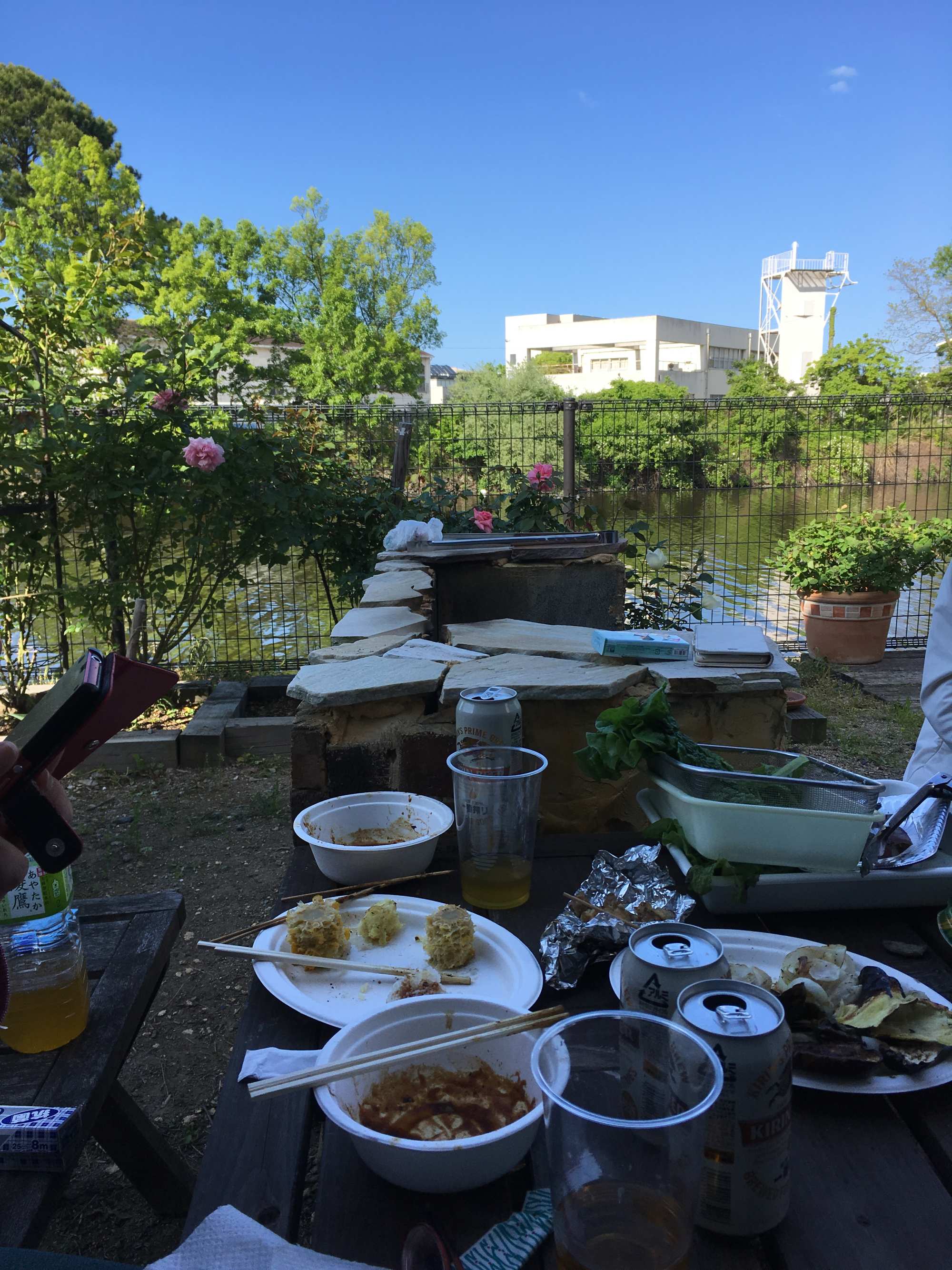 連休に友人達と裏庭でBBQ福岡、異常無し。洗濯物も大丈夫!