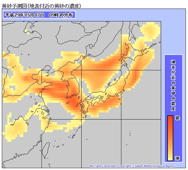 인제 창문열고 환기시키는게 오히려 더 손해야日本も今年初の黄砂が松江で観測された。