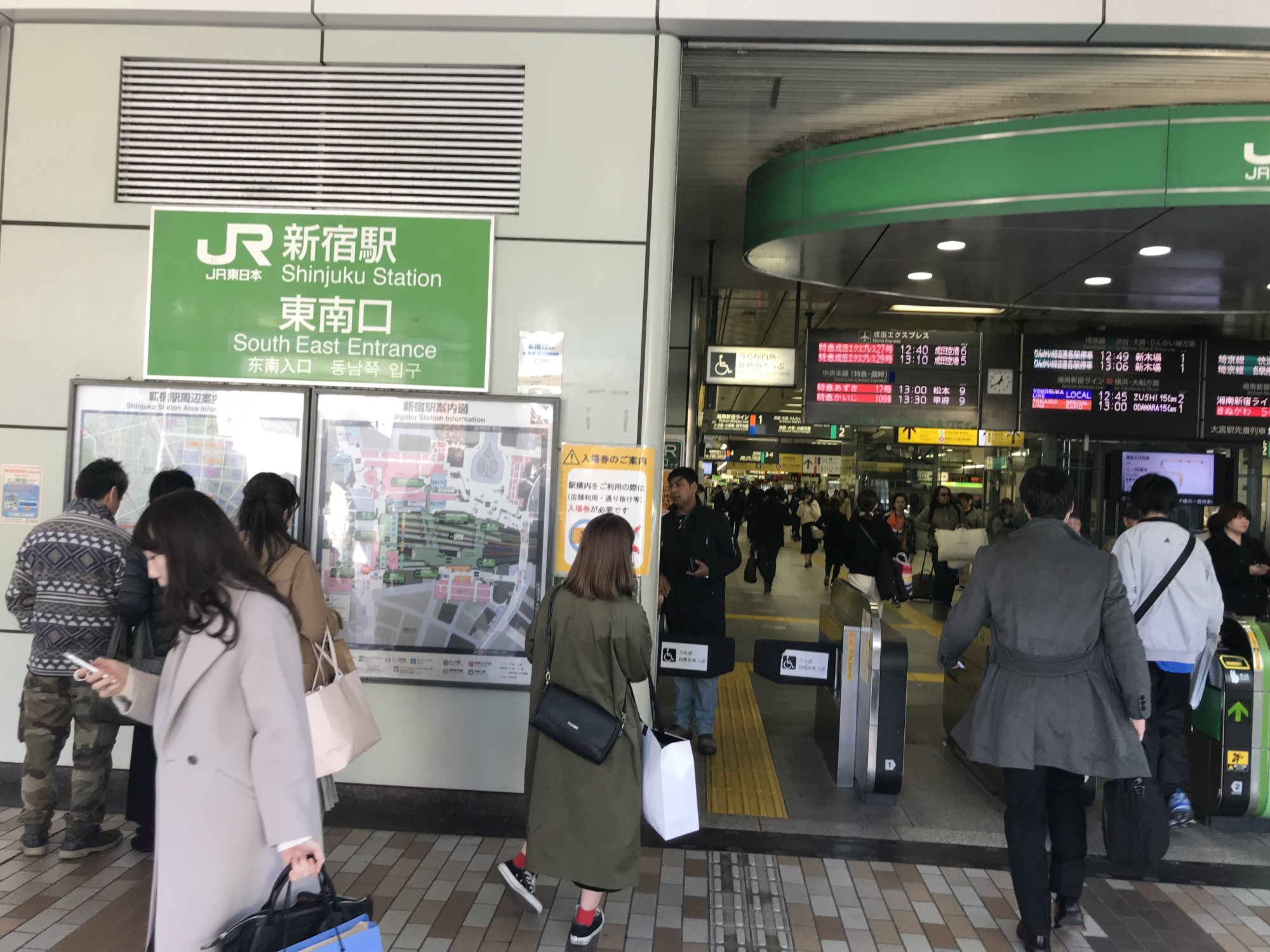 一度南口を出て左側に向かってぐるっと回った方が分かりやすいと思います。現在弾丸特急ノ車内