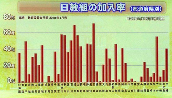 山岳部の生徒が那須で遭難し、教員が責任逃れみたいな発言をしてた栃木は組織率ゼロじゃん。俺は北海道だから北教組だったな。日本の戦争責任とか朝鮮の問題は無かったな。ただ、ストライキが多かったかな。あの当時、ストがあると自習になって喜んでたな。
