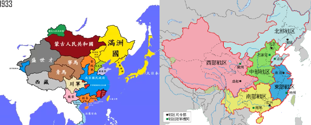 満州と内モンゴルと山東半島。北部戦区が日中戦争以前の日本側勢力とそっくり。