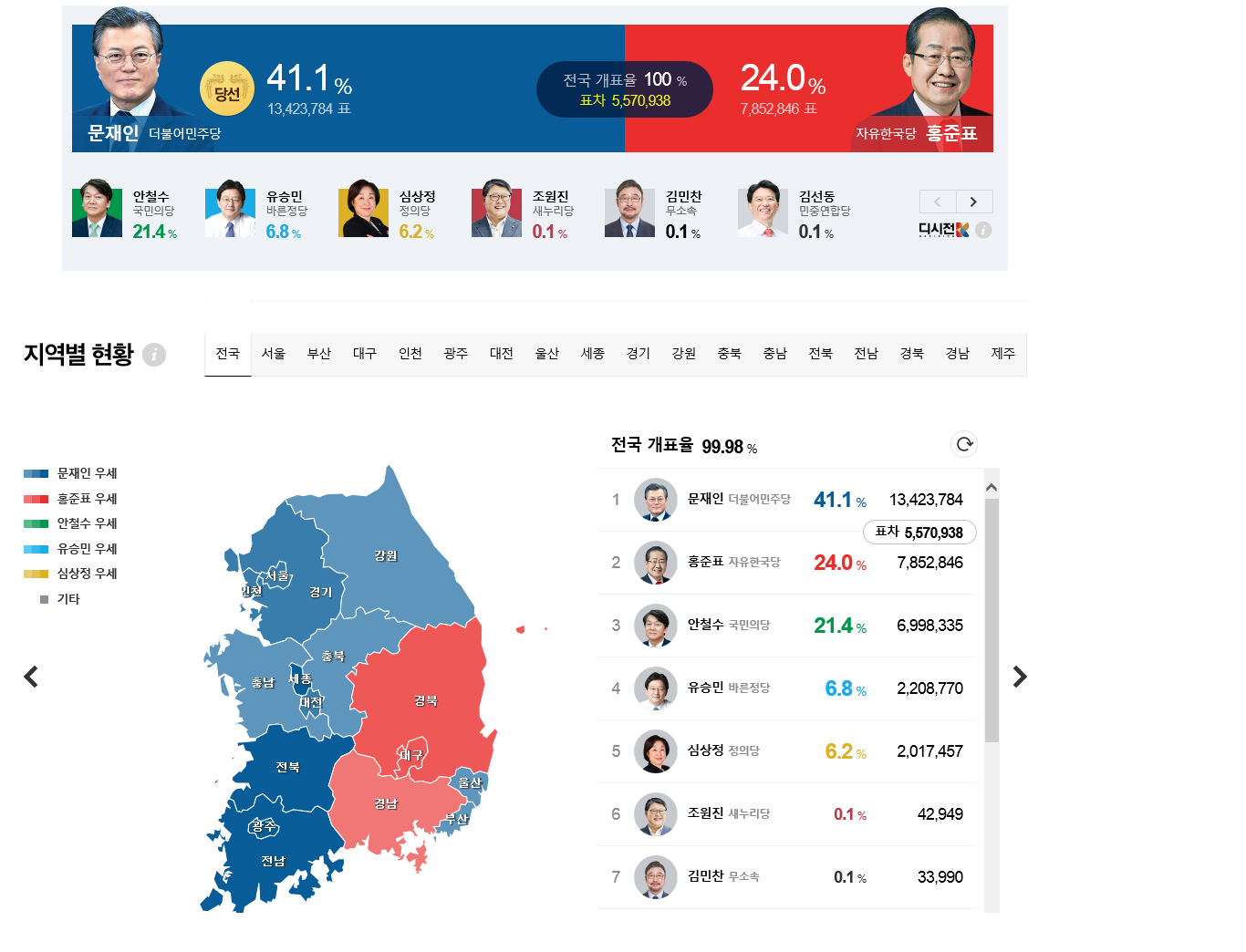 개표 100% 완료. 최종 득표율은?