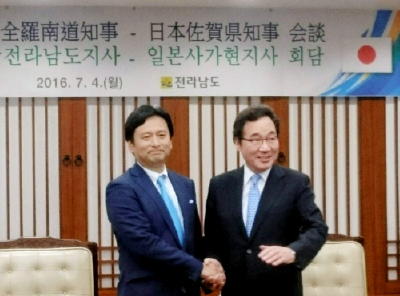이낙연 전라남도지사는 8일 사가현청에서 야마구치 요시노리(山口祥義) 사가현 지사와 회담을 갖고 2017년 자매결연 체결을 비롯해 도자산업, 문화․예술, 민간 스포츠 등 분야의 협력 강화를 합의했다.