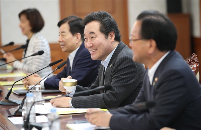 (서울=연합뉴스) 김승두 기자 = 이낙연 국무총리가 22일 오전 서울 세종로 정부서울청사에서 열린 국정현안점검 조정회의에 참석해 회의에 앞서 장관들과 밝은 표정으로 대화하고 있다. 2017.6.22