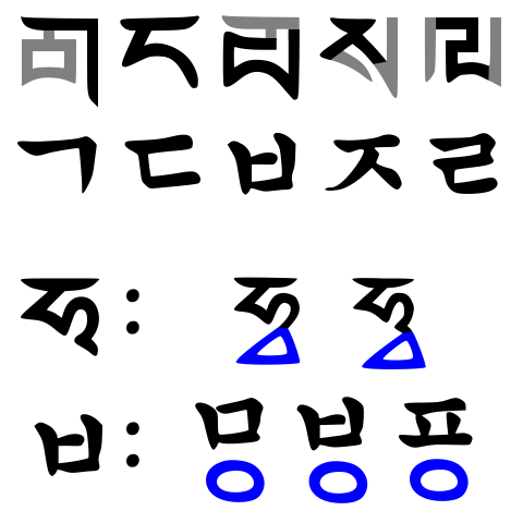 그것 말고도 한글이 티베트 문자하고 같은 계통이라고 하는 미얀마 문자보다도 티베트 문자하고 비슷하게 생긴 것도 있지만何言ってるか判んないけど