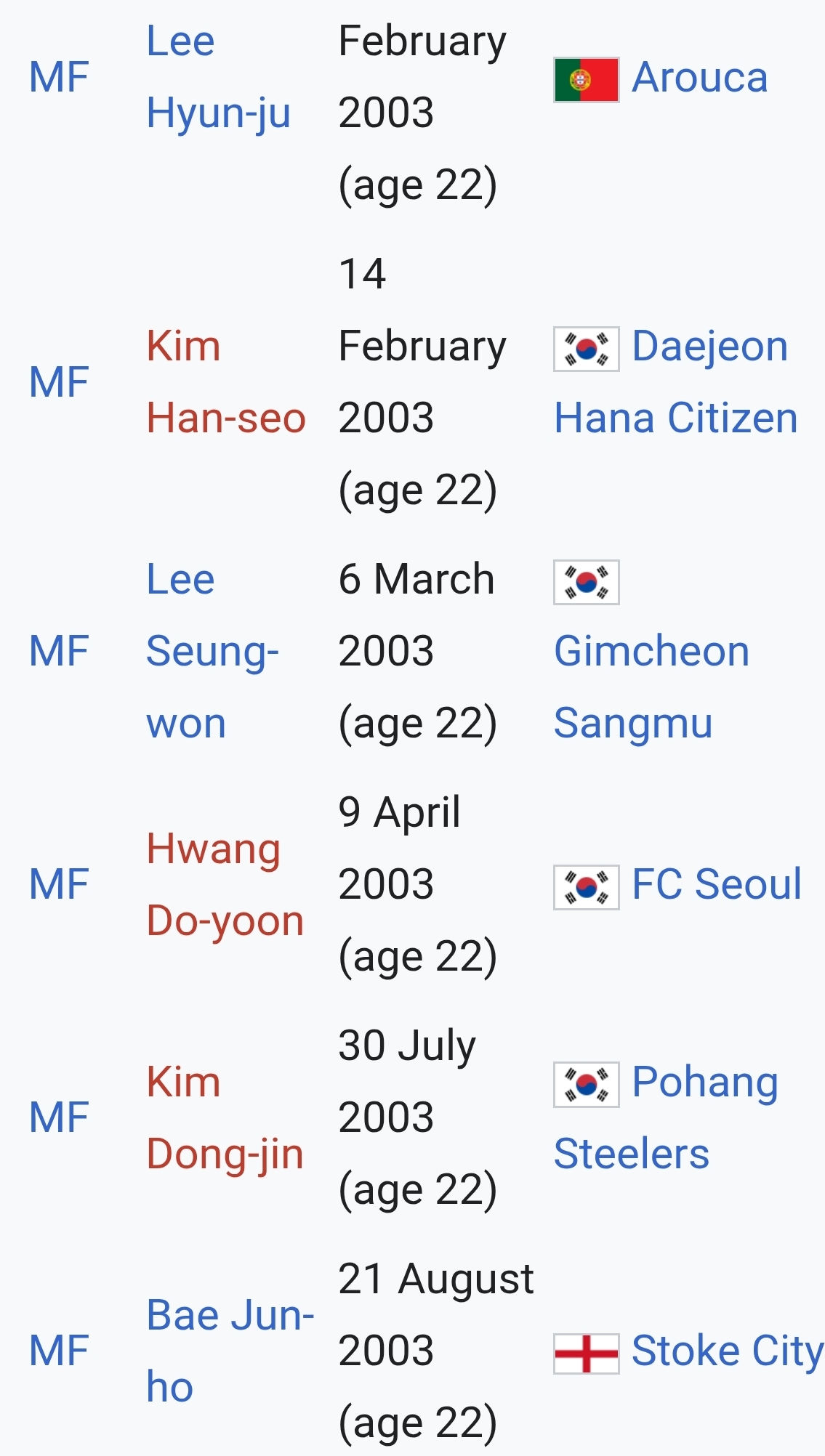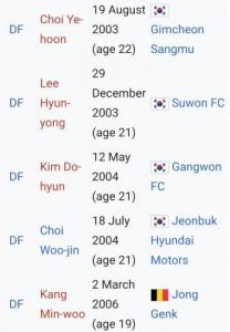 06년생 3명은 u22팀으로 소집 되었습니다.