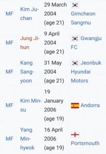 유럽파 양민혁 박승수 김민수 윤도영 강민우는 이미 유럽에서 뛰고 있고