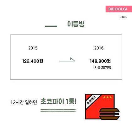 国防部は兵士の月給を2012年から段階的に引き上げ、現在は兵長が21万6000ウォン(約2万1300円)、上等兵が19万5000ウォン、一等兵が17万6400ウォン、二等兵が16万3000ウォンとなっている。12年の約2倍に上がった。この引き上げ計画が今年終了したことから、軍は新たに来年以降の計画策定に取り組んでいる。