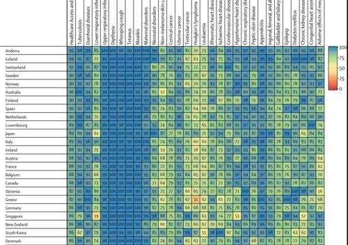 미국 워싱턴대학 '보건 계측 및 평가 연구소'(IHME) 크리스토퍼 머레이 소장이 이끌고 각국 학자들이 참가한 국제 공동 연구팀은 세계 195개국의 '1차 보건의료 접근성 및 품질'(HAQ)을 평가하고 지수로 만들었다.