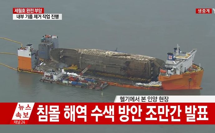 上海サルベージ関係者は21日、「韓国の新政府が海洋水産部長官を任命したら、来月中下旬に引き揚げ作業の追加費用329億ウォン(約33億円)の支払いを再び要求する予定」と明らかにした。韓国政府と上海サルベージが契約した引き揚げ費用は916億ウォン(約91億円)だった。しかし、昨年の引き揚げ方式の変更に伴いリフティングビームが設置され、準備期間が約5カ月延長されたことにより329億ウォンが追加で投入されたという。