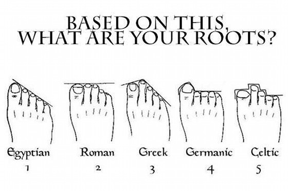 私のまわりでは足の親指より人差し指の方が長いと(要はギリシャ型)親より出世するっていう迷信があるけど、うちの地方だけなのか?ローマだな